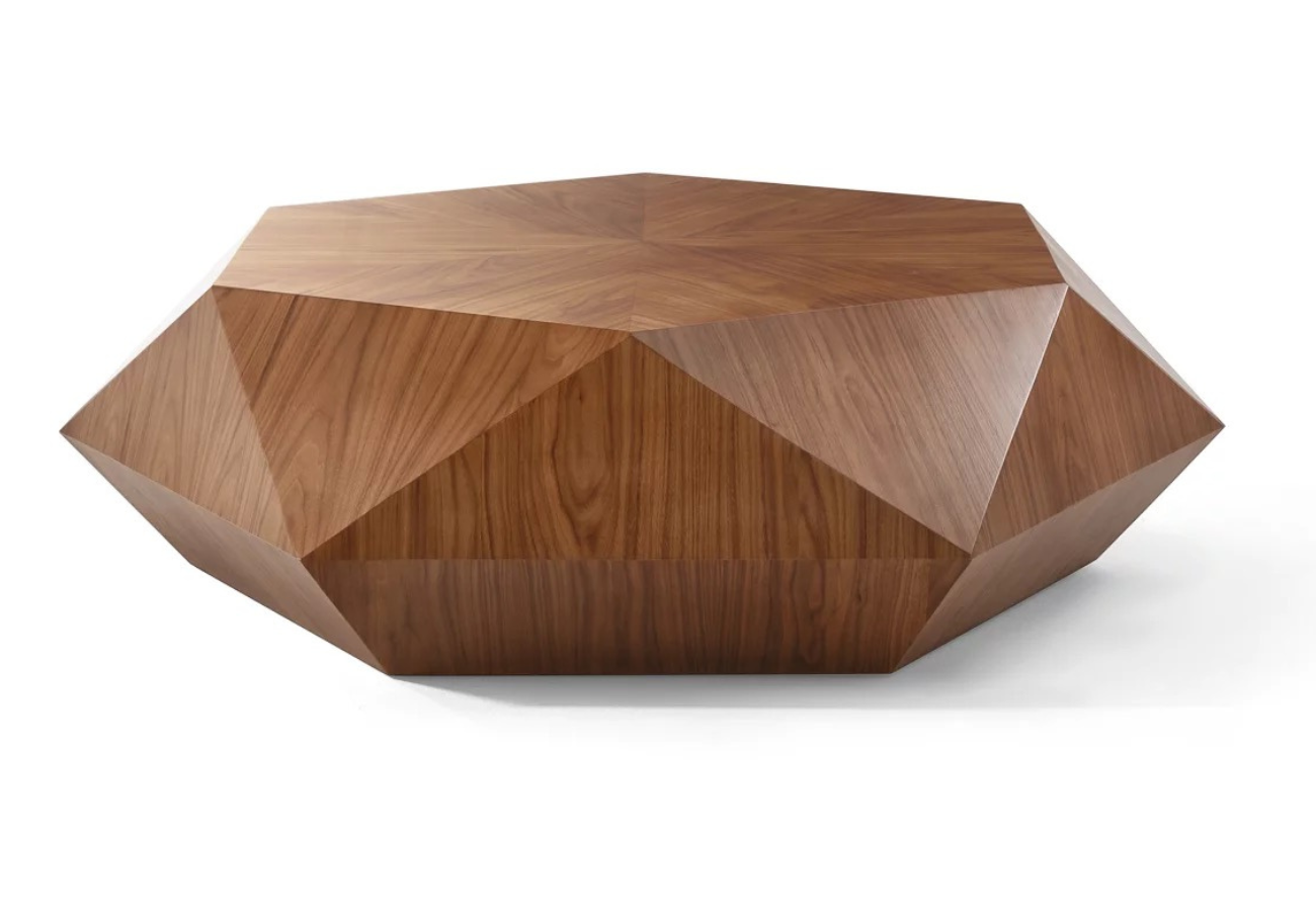 Prisma (Table basse Prisma en bois facetté – design sculptural contemporain)