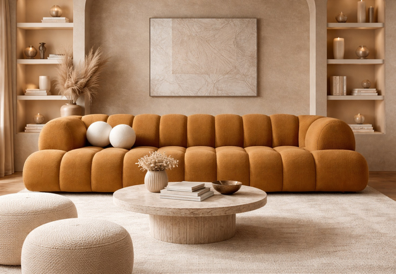 Ce canapé se caractérise par ses volumes généreux et ses lignes enveloppantes, créant une présence élégante et contemporaine. Son assise profonde intègre une mousse haute résilience à densités différenciées, offrant un accueil doux et un soutien optimal dans le temps. Pièce sculpturale, il apporte présence, confort et sophistication à l’espace. Son design invite à la détente et transforme le salon en un lieu chaleureux et visuellement remarquable. Revêtu d’un tissu de haute qualité.