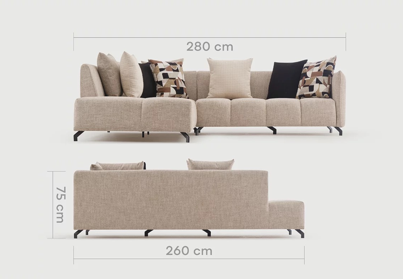 Este sofá en L ha sido concebido como un espacio de reunión y descanso, donde el confort se vive de forma natural. Su tapizado premium, suave y envolvente, invita a instalarse y disfrutar del momento, mientras que su excelente resistencia garantiza una belleza que perdura en el tiempo.