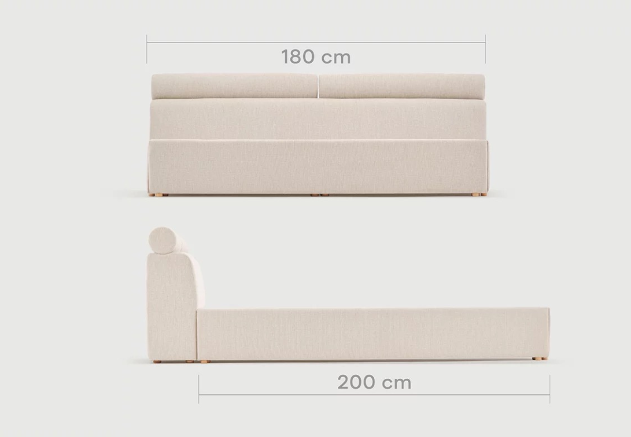 El cabecero acolchado ofrece un apoyo confortable y equilibrado, mientras que la estructura robusta asegura firmeza y durabilidad. Sus líneas limpias y proporciones armoniosas convierten este modelo en una pieza clave para crear un dormitorio moderno, refinado y orientado al bienestar. Estructura elaborada en madera maciza de calidad superior, que garantiza solidez y longevidad. Base de espuma estructural de alta resistencia y confortable, diseñada para optimizar el soporte y mejorar la experiencia de descanso.