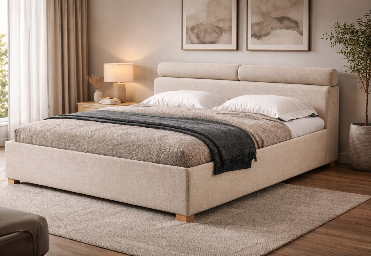 Esta cama representa una interpretación contemporánea del descanso de alta gama, donde el confort y la calidad se fusionan con un diseño elegante. Su tapizado en tejido premium destaca por su tacto agradable y su excelente resistencia, aportando una sensación envolvente y sofisticada.