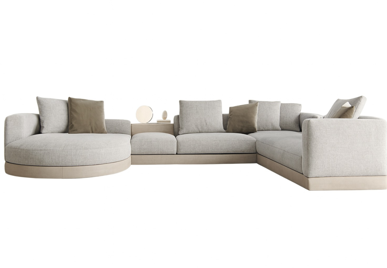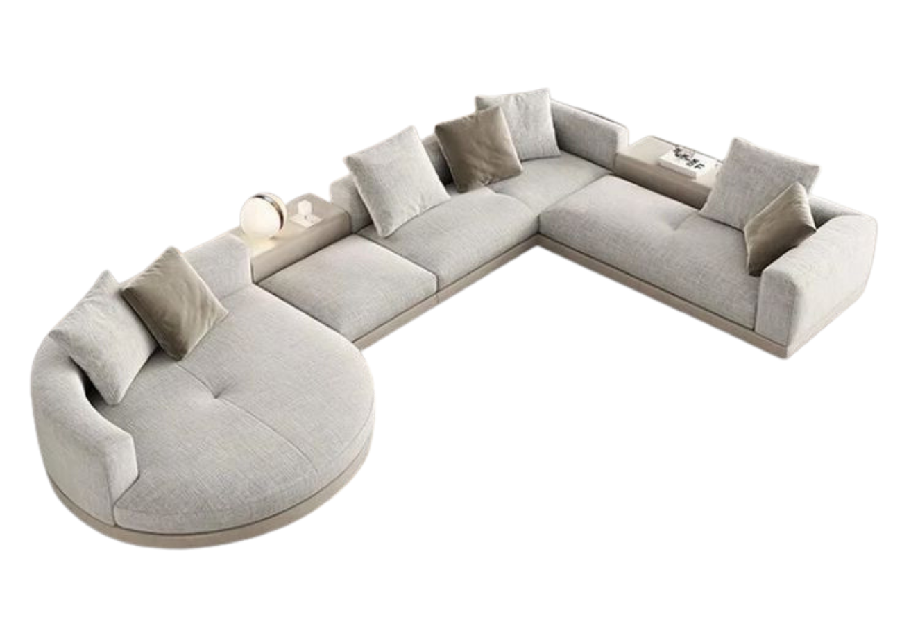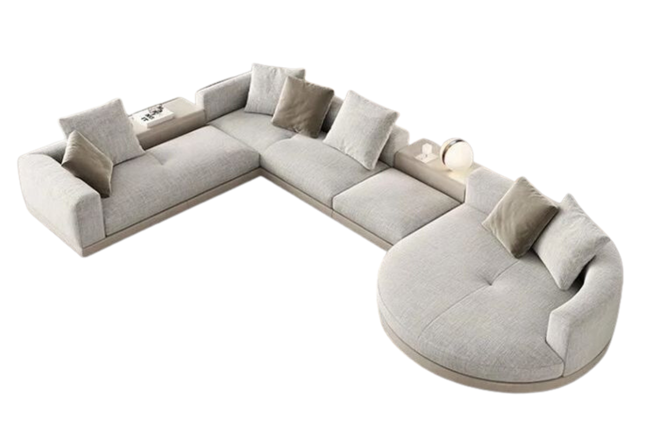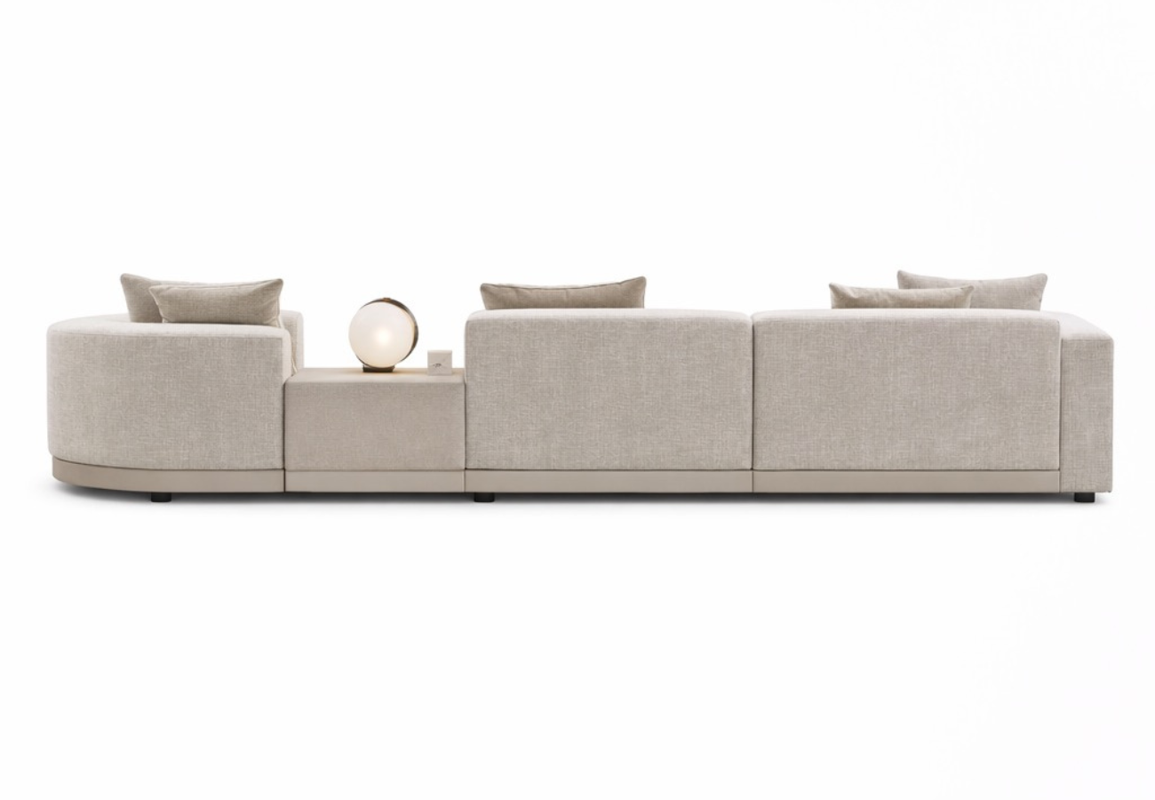 Este salón de carácter exclusivo destaca por su diseño orgánico y envolvente, donde las curvas suaves crean una atmósfera acogedora y sofisticada. Su composición modular lo convierte en una pieza central pensada para estructurar el espacio con elegancia y flexibilidad.