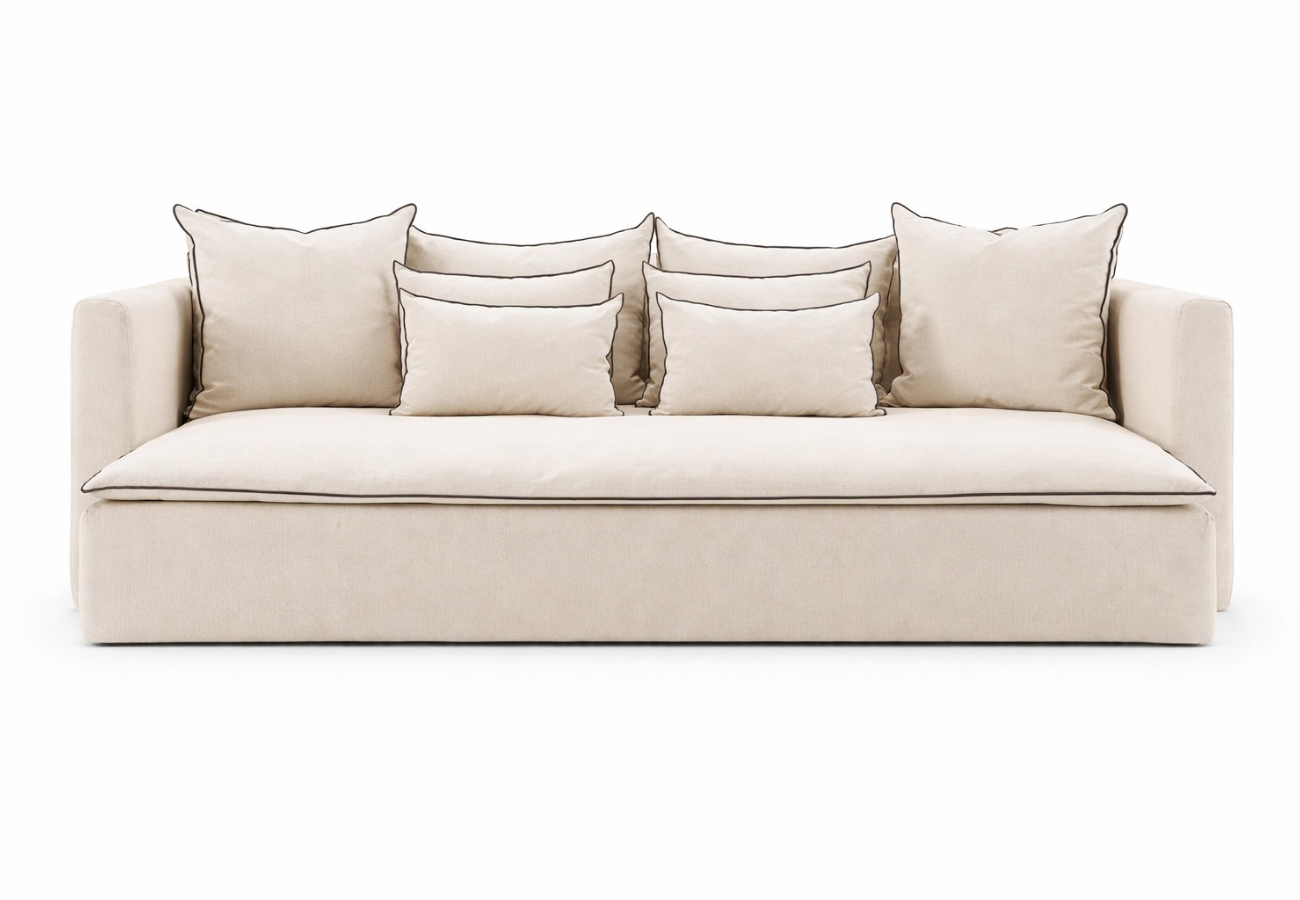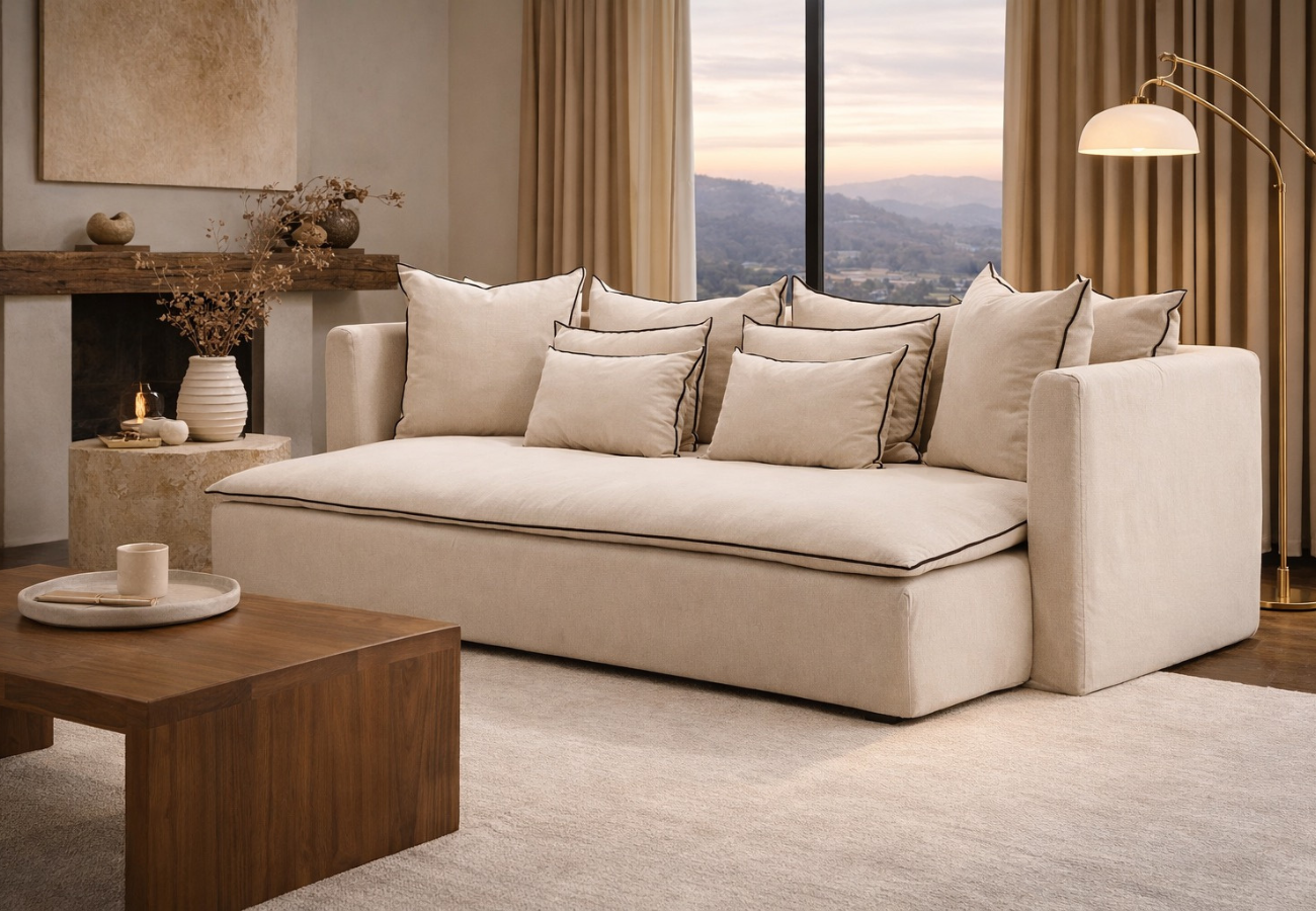 Los cojines envolventes intensifican la sensación de bienestar, invitando al descanso prolongado. Combinado con un tejido premium, suave y resistente, este sofá convierte cada instante de relajación en una experiencia lujosa donde confort, durabilidad y excelencia artesanal se unen en armonía.