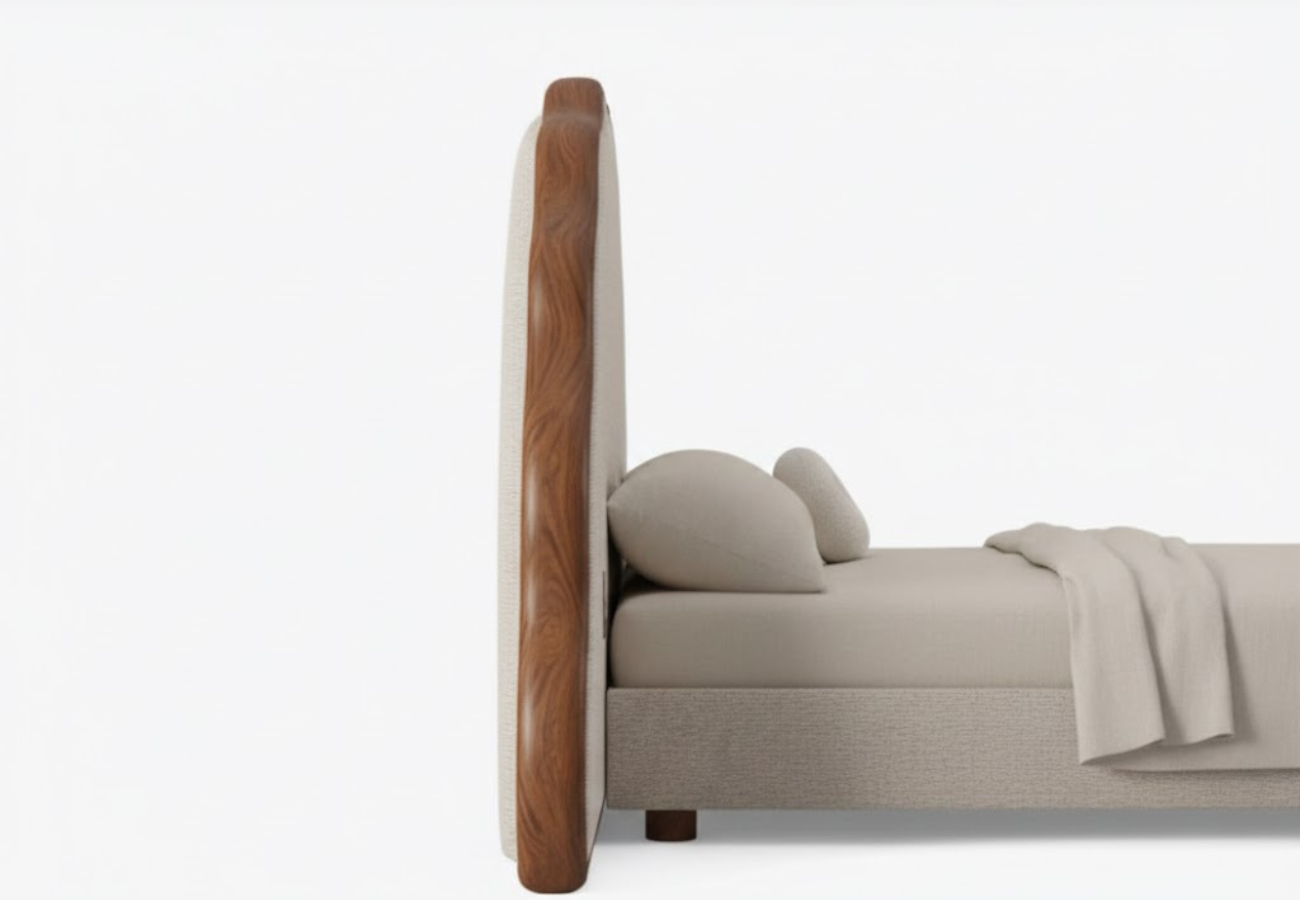 Una silueta escultural caracteriza esta majestuosa cama cuya pureza de líneas frontales define el espacio con una elegancia excepcional. Su diseño orgánico aporta una serenidad inmediata a su hogar, mientras que su acabado completamente tapizado con materiales de primera calidad permite situarla en el centro de la habitación como una verdadera isla de confort, sin comprometer la estética desde ningún ángulo.