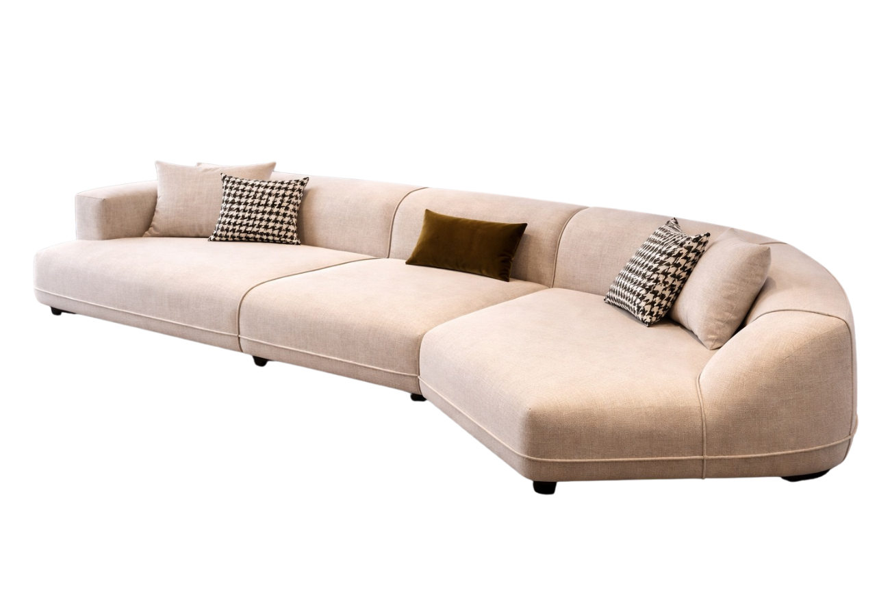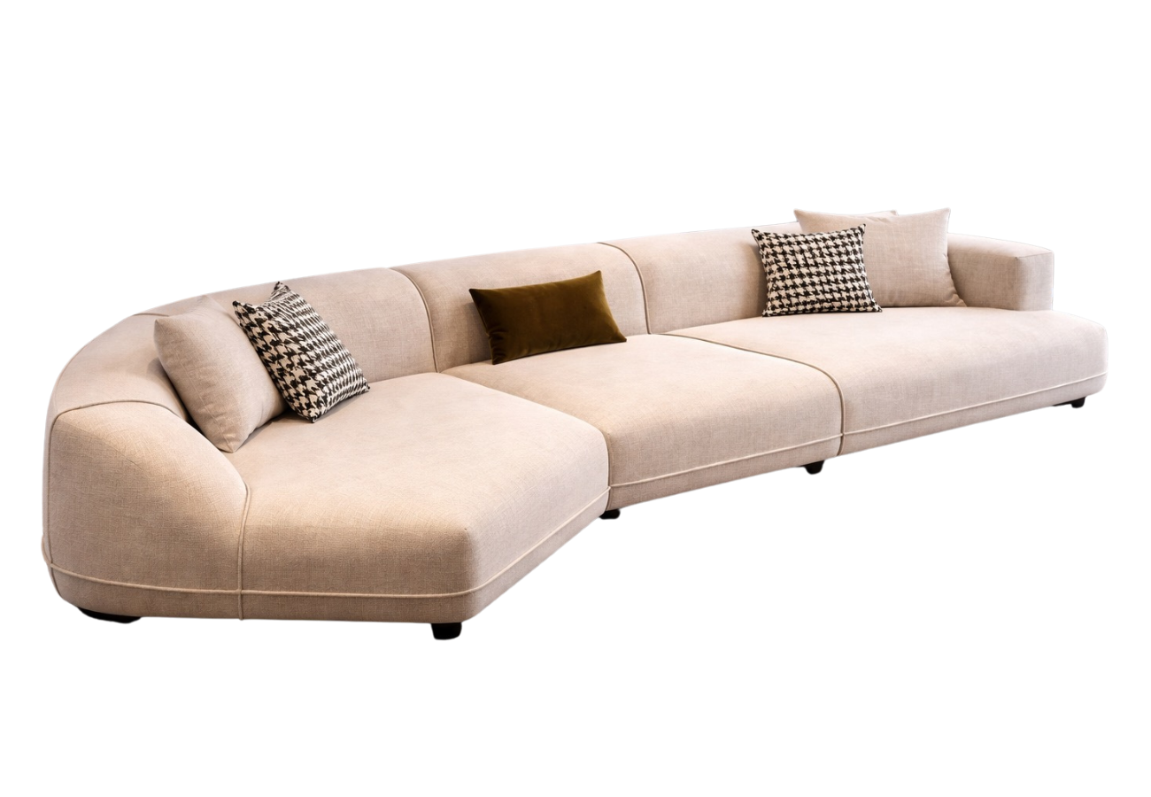 Este salón destaca por su diseño fluido y orgánico, donde las formas curvas aportan una sensación inmediata de suavidad y sofisticación. Su silueta escultural crea una presencia elegante y contemporánea, perfecta para interiores modernos y exclusivos.
