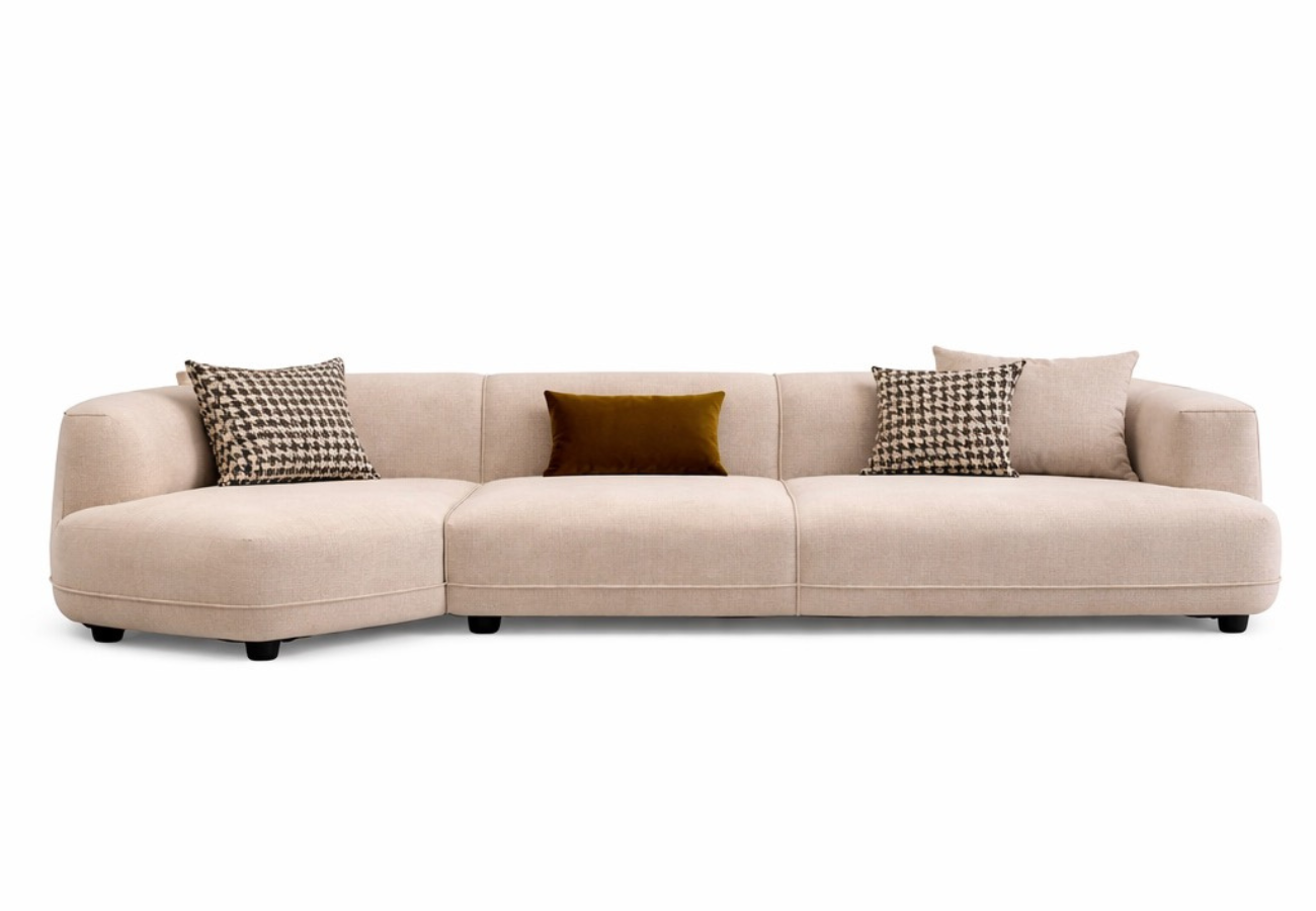 La sentada amplia y continua ofrece un confort envolvente, ideal para el descanso prolongado. El tapizado textil premium, de textura refinada, garantiza durabilidad y una estética impecable con el paso del tiempo. La tecnología en espuma mejora la estabilidad y la resistencia, manteniendo el soporte con el uso. Su estructura resistente en madera maciza superior aporta firmeza y solidez, reforzando la calidad artesanal de la pieza.