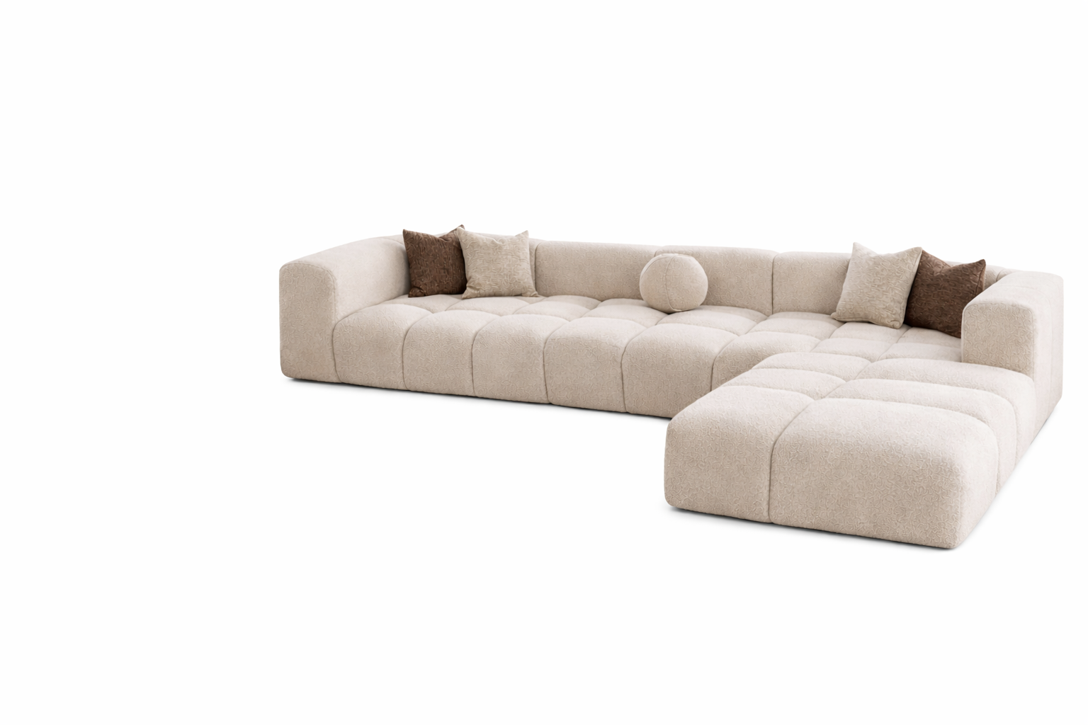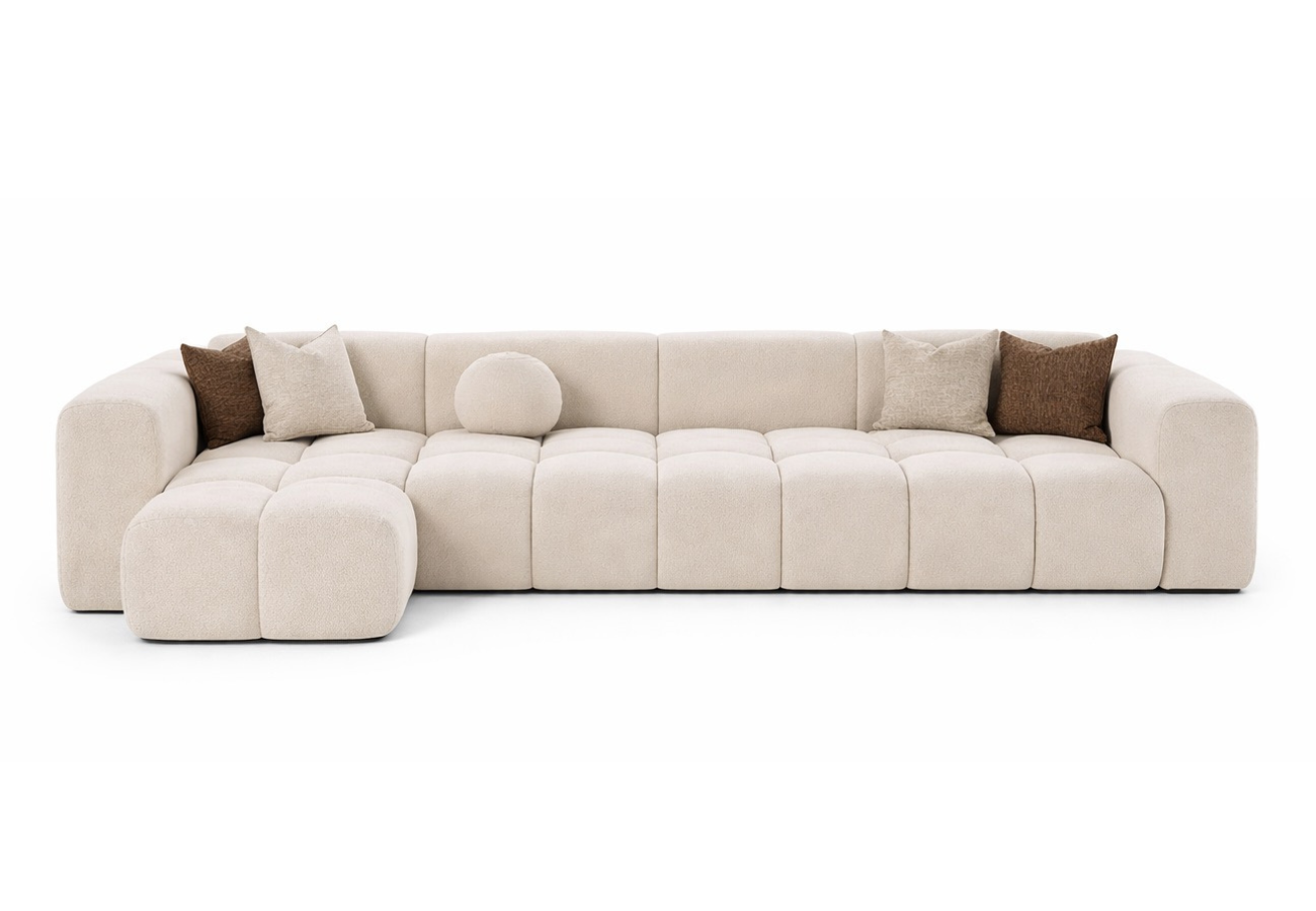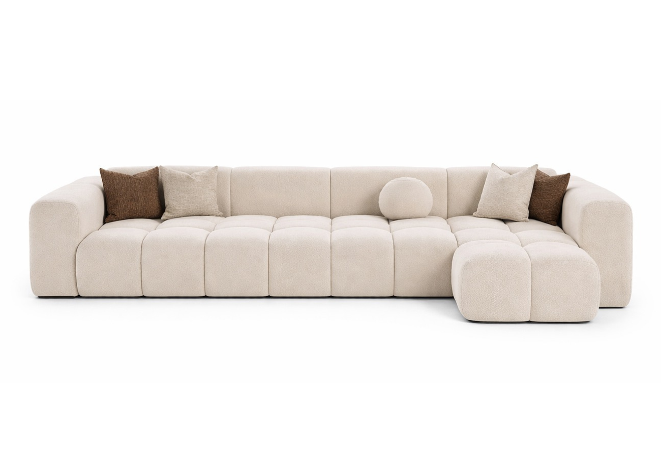 Este sofá ofrece una interpretación suave y contemporánea del lujo. Sus volúmenes acolchados crean una silueta acogedora y elegante.