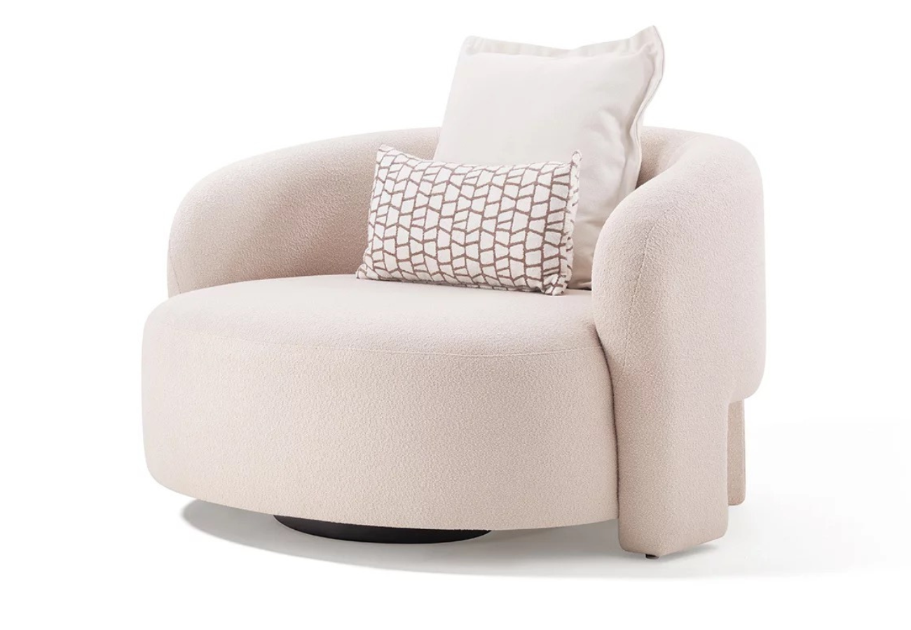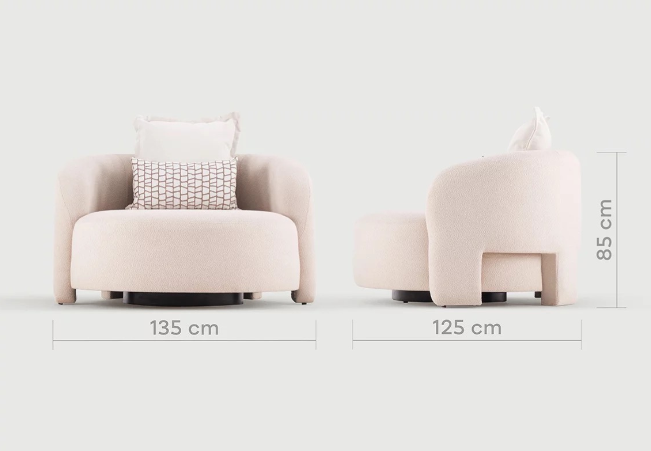 Su base de madera noble de calidad superior, hecha para durar, aporta solidez estructural y una presencia elegante. Funcional y expresivo a la vez, este sillón se convierte en una pieza protagonista dentro de interiores contemporáneos, minimalistas o de estilo premium, donde el confort se transforma en una expresión de lujo discreto.