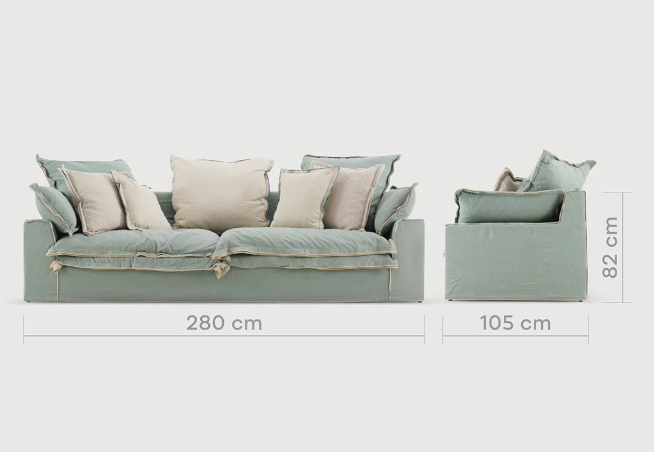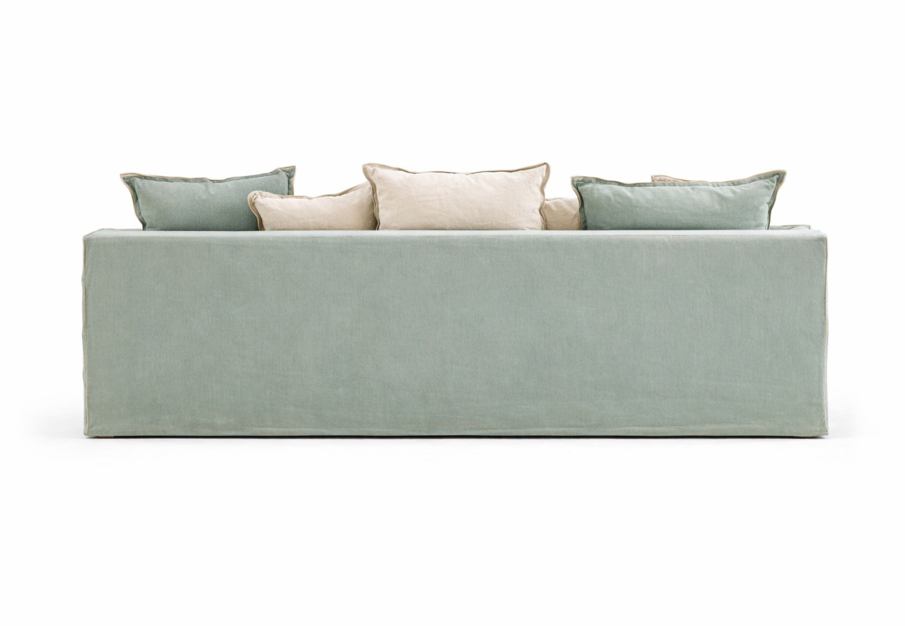 El revestimiento textil, flexible y transpirable, realza los volúmenes generosos y aporta al sofá una estética relajada pero decididamente lujosa. Cada detalle refleja una fabricación minuciosa, donde el confort se convierte en una verdadera experiencia al servicio de un interior elegante y contemporáneo.